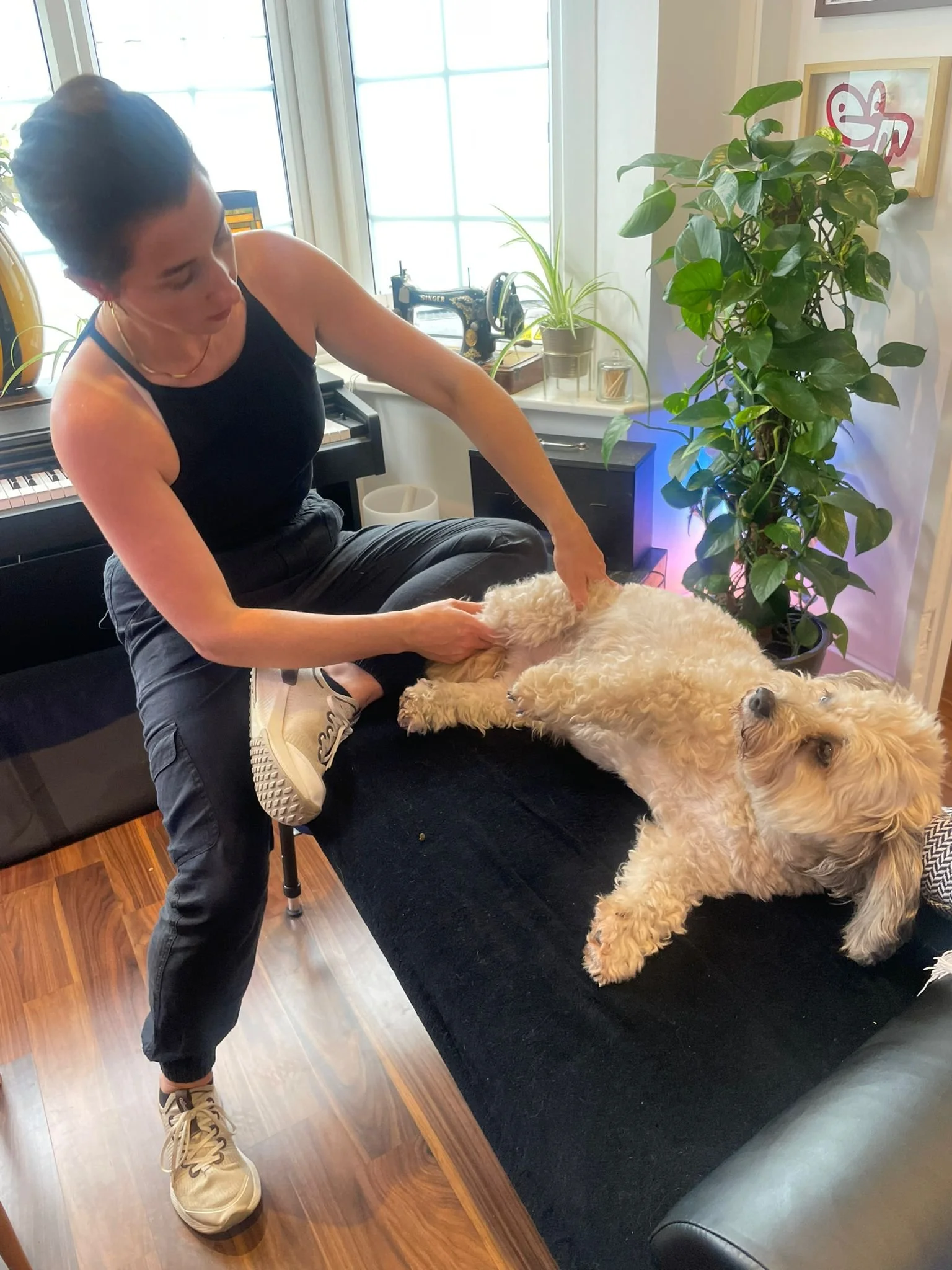 ‘Berkeley’ the dog enjoying Soft-Tissue Therapy!